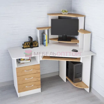 Стол компьютерный Квартет-6 (1450*1350*500) белый/дуб крафт золотой