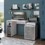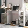 С одной стороны - тумба с распашным фасадом и выдвижным ящиком, которую можно использовать под принтер, с другой - удобная секция с открытыми полками, которая легко трансформируется в отдельное место для системного блока.