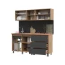 Столешница изготовлена из ДСП толщиной 38 мм с имитацией дуба вотан. Опора 100 мм, регулируемая, выполнена из АВС-пластика с хромированным покрытием, что придает гарнитуру современный и стильный вид. Полкодержатель и направляющие изготовлены из стали с хромированным покрытием, обеспечивая надежность и долговечность использования. Петля 4х-шарнирная, накладная, также выполнена из стали с хромированным покрытием.