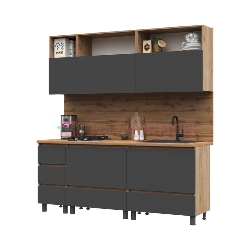 Кухня Хелен 2,0 серый графит/дуб крафт золото от производителя ТДАнд в интернет-магазине мебели Мебельоптторг. Эту мебель можно недорого купить в Гатчине в нашем интернет-магазине мебели, всего за 27216 рублей! Мы предлагаем как самовывоз с нашего склада, так и бережную доставку по городу Гатчина всего за 1490 рублей и по всей России. У нас есть и срочная доставка мебели, которая стоит дороже, но вы получаете товар в день заказа!