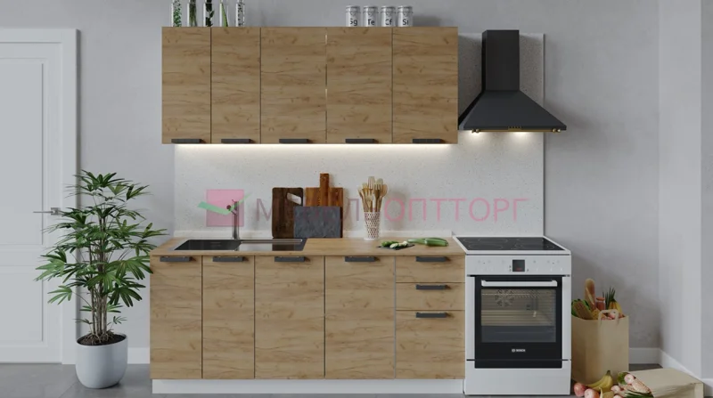 "Кухонный гарнитур ""Пасаденна"" белый/дуб вотан - стильный и практичный комплект из ЛДСП длиной 1,8 метра в современном стиле спроектирован для удобного ежедневного использования.