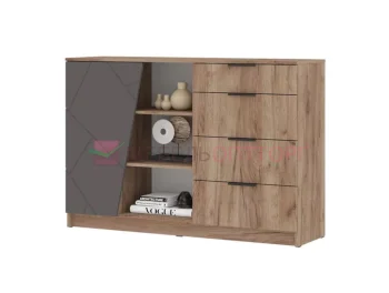 ОРЕГОН КМ 01 Комод 1400 (1400х950х400) Фасад МДФ АСФАЛЬТ СУПЕРМАТ,ДУБ КРАФТ ТАБАЧНЫЙ/Корпус ДУБ КРАФТ ТАБАЧНЫЙ