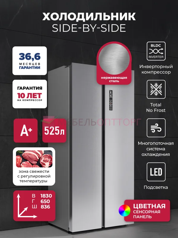 | | | Холодильник двухкамерный отдельностоящий с инвертором LEX LSB525IXID / Отдельностоящий двухкамерный