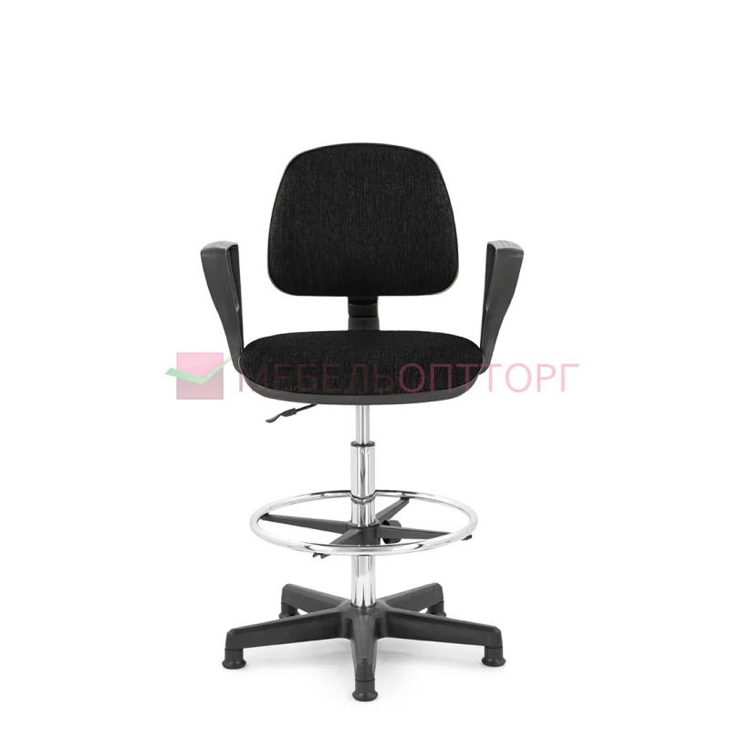 Данная модель отлично подойдет для небольших офисов. Кресло обито износостойкой тканью, имеет удобные подлокотники и широкое сиденье. Оснащено хромированным кольцом для ног, обеспечивающим дополнительную поддержку.