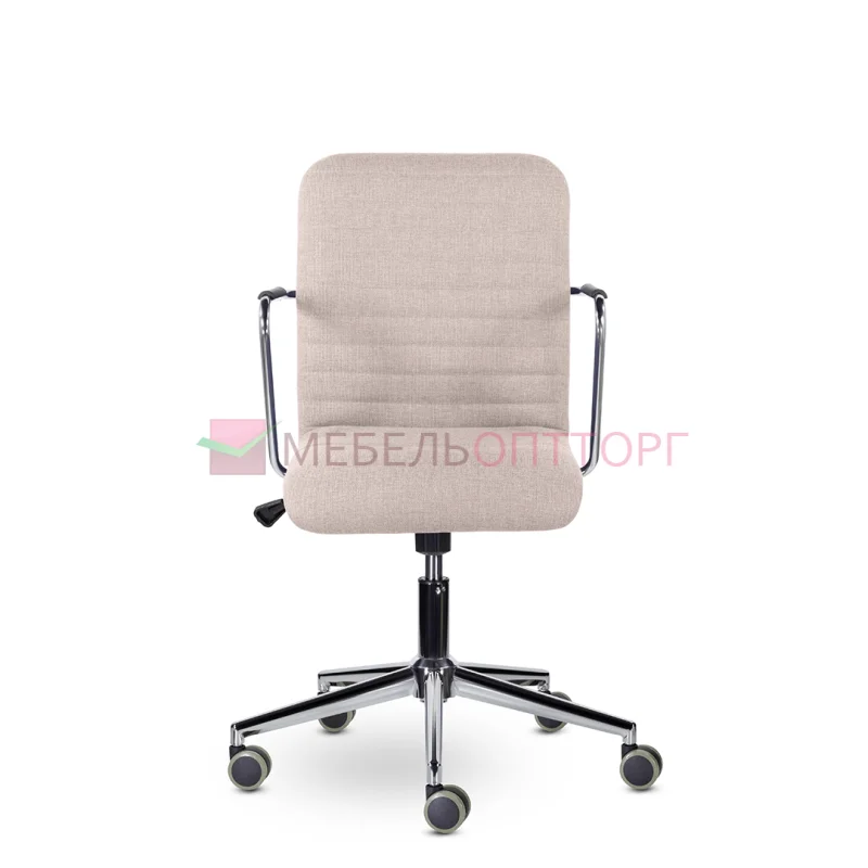 Уникальный каркас из металла и узкие хромированные подлокотники с небольшими пластиковыми накладками придают конструкции легкость и прочность. Горизонтальные строчки на спинке подчеркивают элегантный и современный вид. Хромированная крестовина выдерживает до 120 кг.