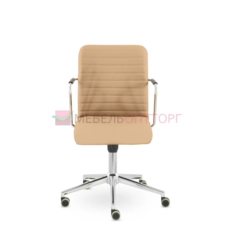 Уникальный каркас из металла и узкие хромированные подлокотники с небольшими пластиковыми накладками придают конструкции легкость и прочность. Горизонтальные строчки на спинке подчеркивают элегантный и современный вид. Хромированная крестовина выдерживает до 120 кг.