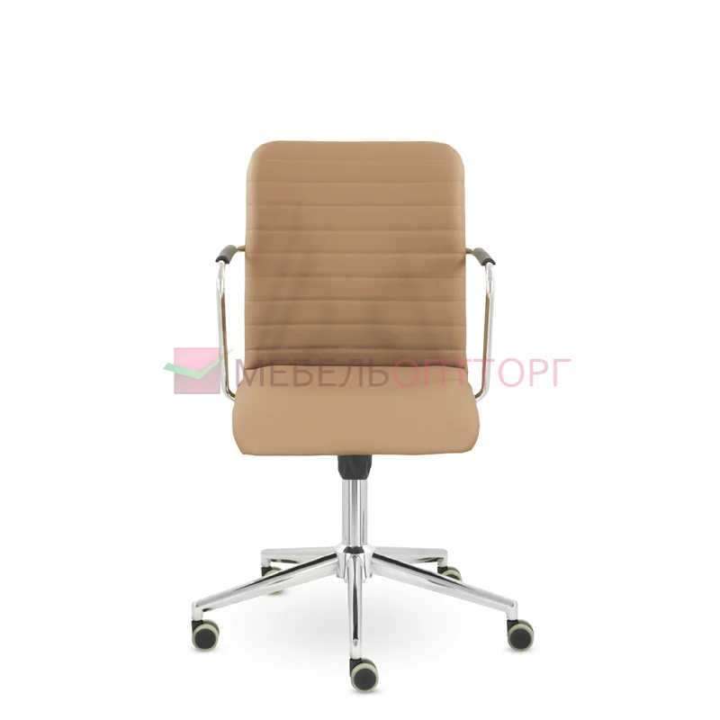 Уникальный каркас из металла и узкие хромированные подлокотники с небольшими пластиковыми накладками придают конструкции легкость и прочность. Горизонтальные строчки на спинке подчеркивают элегантный и современный вид. Хромированная крестовина выдерживает до 120 кг.