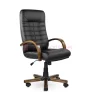 Кресло с широкой эргономичной спинкой имеет креативную прострочку, делящие каркас на небольшие прямоугольники. Обивка - экокожа высокого качества, широкий подголовник, подлокотники и крестовина - натуральное дерево.