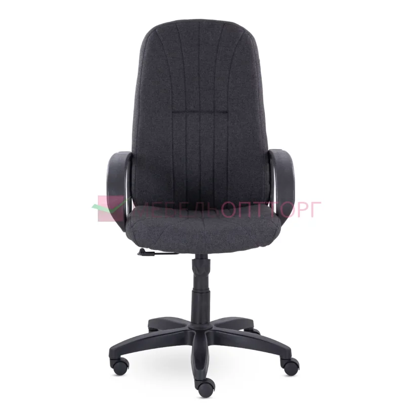 Кресло руководителя с мягкими увеличенными подушками. Широкая эргономичная спинка и глубокое сидение разделены на две части горизонтальной прострочкой. Удобные пластиковые подлокотники способствуют комфортной посадке в кресле.