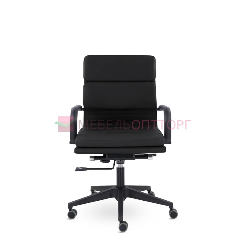 Кресло руководителя в современном металлическом каркасе. Комфорт создается благодаря мягким элементам спинки и сиденья. Черный каркас и узкая крестовина задают современный стиль креслу. Кресло отлично смотрится в строгих и открытых кабинетах.