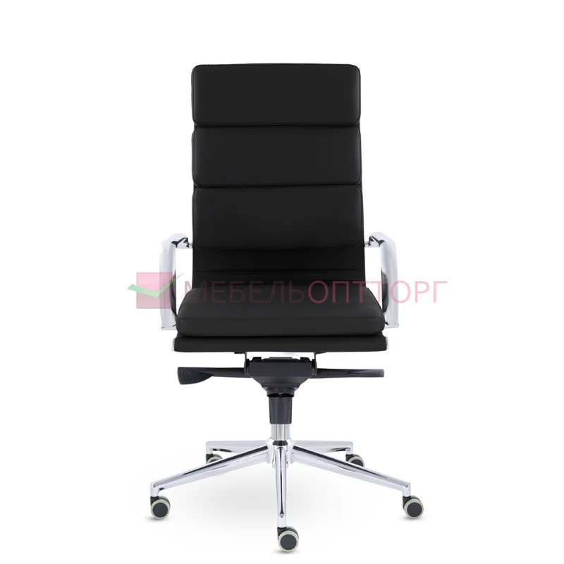 Кресло руководителя в современном металлическом каркасе. Комфорт создается благодаря мягким элементам спинки и сиденья. Зеркальный хромированный каркас и узкая крестовина задают современный стиль. Кресло отлично смотрится в строгих и открытых кабинетах. Механизм качания - мультиблок.