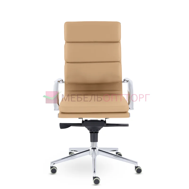 Кресло руководителя в современном металлическом каркасе. Комфорт создается благодаря мягким элементам спинки и сиденья. Зеркальный хромированный каркас и узкая крестовина задают современный стиль. Кресло отлично смотрится в строгих и открытых кабинетах. Механизм качания - мультиблок.