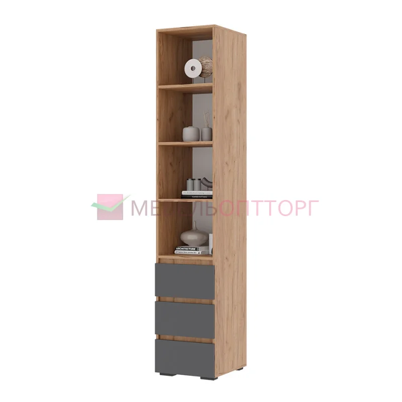 Хелен ПН 02 Пенал открытый (0,400х2,100х0,460) серый графит/дуб крафт золото