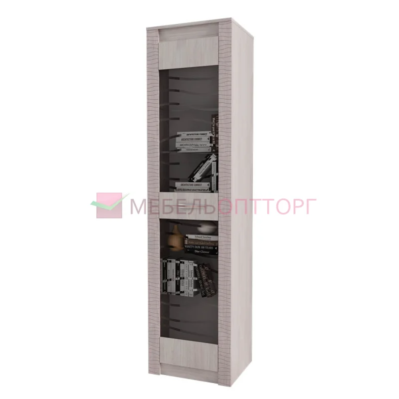 Модель позволит разместить книги, сувениры, предметы декора или посуду, изделие выполнено из ЛДСП цвета ясень белый, фасад дверцы имеет стеклянные вставки, что облегчает конструкцию, пенал сможет вписаться в комнаты любого стиля.