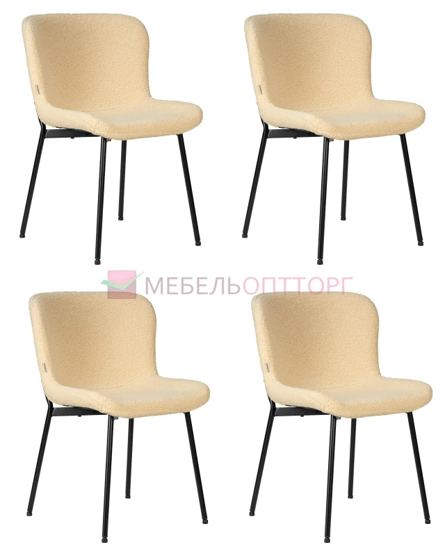 | | | | Набор 4 шт Стул обеденный MILO, черные ножки, кремовый букле (UF992-02)