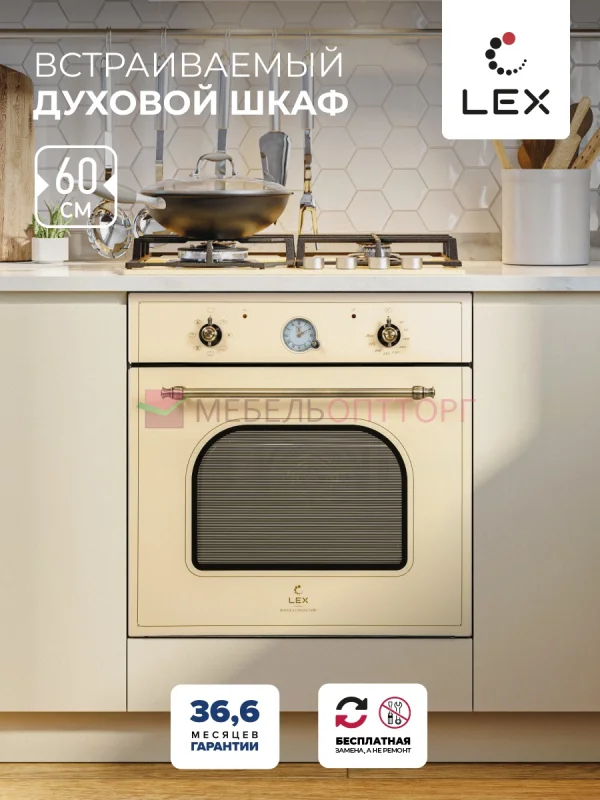 Встраиваемый электрический духовой шкаф LEX EDM 070 С IV — технологии в стильном оформлении. Духовка с ретро дизайном, выполненная в цвете слоновой кости найдет свое место в любом классическом кухонном пространстве. Аналоговый таймер и ручки под старину дополняют образ. 7 режимов работы, включая конвекцию, турбо гриль, размораживание предполагают множество возможностей приготовления. Модель LEX EDM 070 С IV имеет механическое управление, подсветку, оснащена съемной дверцей с системой SnapOff, хромированными направляющими. Тангенциальное охлаждение защищает от перегрева и возгорания.