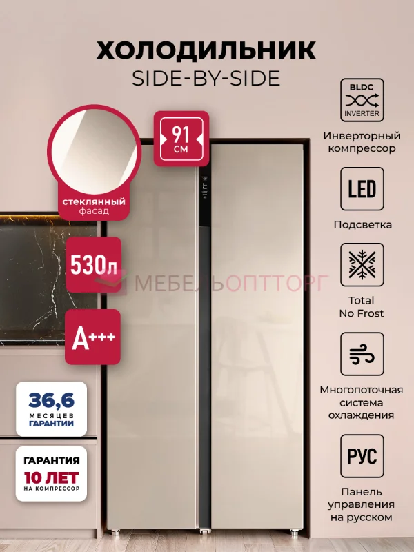 Двухкамерный холодильник LSB 530 вместит все вкусное и полезное. Fresh-зона и многопоточная система вентиляции обеспечат свежесть любого продукта, два контура охлаждения, панель управления и дисплей позволят точно контролировать температуру в каждом отделении. Для простоты эксплуатации модель имеет несколько предустановленных режимов работы: суперзаморозка и быстрое охлаждение, а также смарт-режим и поддержание температуры в течение нескольких часов, которое пригодится при неполадках с электричеством. Благодаря расположению дверей SIDE BY SIDE продукты в обеих камерах можно размещать на комфортных для вас уровнях. Технология Total No Frost делает уход за холодильником максимально легким, чтобы у вас было больше свободного времени, а мощный инверторный компрессор работает почти бесшумно.