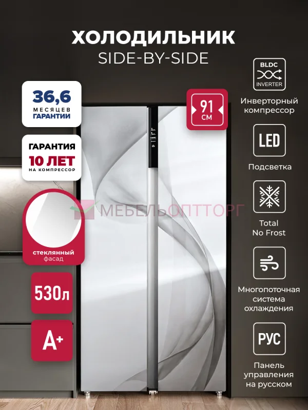 Двухкамерный холодильник LSB 530 вместит все вкусное и полезное. Fresh-зона и многопоточная система вентиляции обеспечат свежесть любого продукта, два контура охлаждения, панель управления и дисплей позволят точно контролировать температуру в каждом отделении. Для простоты эксплуатации модель имеет несколько предустановленных режимов работы: суперзаморозка и быстрое охлаждение, а также смарт-режим и поддержание температуры в течение нескольких часов, которое пригодится при неполадках с электричеством. Благодаря расположению дверей SIDE BY SIDE продукты в обеих камерах можно размещать на комфортных для вас уровнях. Технология Total No Frost делает уход за холодильником максимально легким, чтобы у вас было больше свободного времени, а мощный инверторный компрессор работает почти бесшумно.