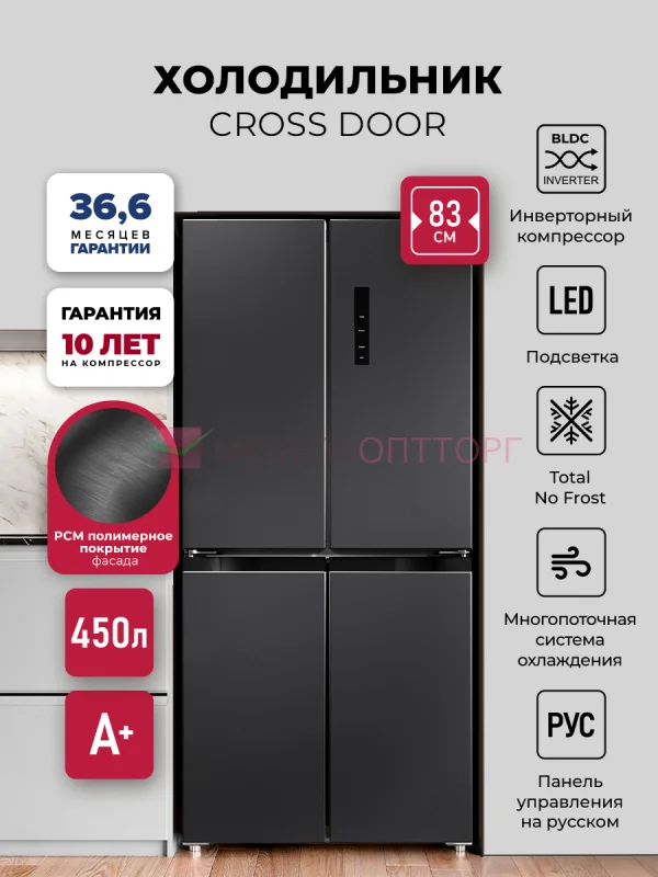 Холодильник трехкамерный отдельностоящий с инвертором LEX LCD450BmID Отдельностоящий трехкамерный