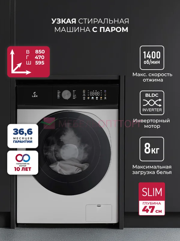 Новая линейка стиральных машин LEX серии Slim — это стильный, надежный и высокотехнологичный помощник для вашего дома, который прослужит вам верой и правдой долгие годы благодаря инверторному мотору и комплектующим высокого качества.