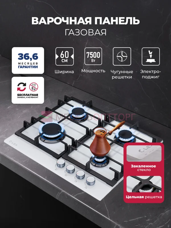 Добавить отзыв о товаре:Варочная панель газовая LEX GVG 642A WH