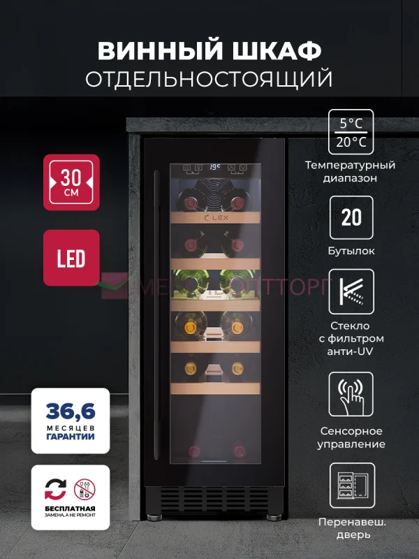 Описание Винный шкаф отдельностоящий LEX LWD3020BL