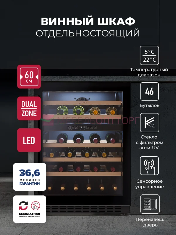 Винный шкаф отдельностоящий LEX LWD6046BL DUAL ZONE / Отдельностоящий, Под столешницу