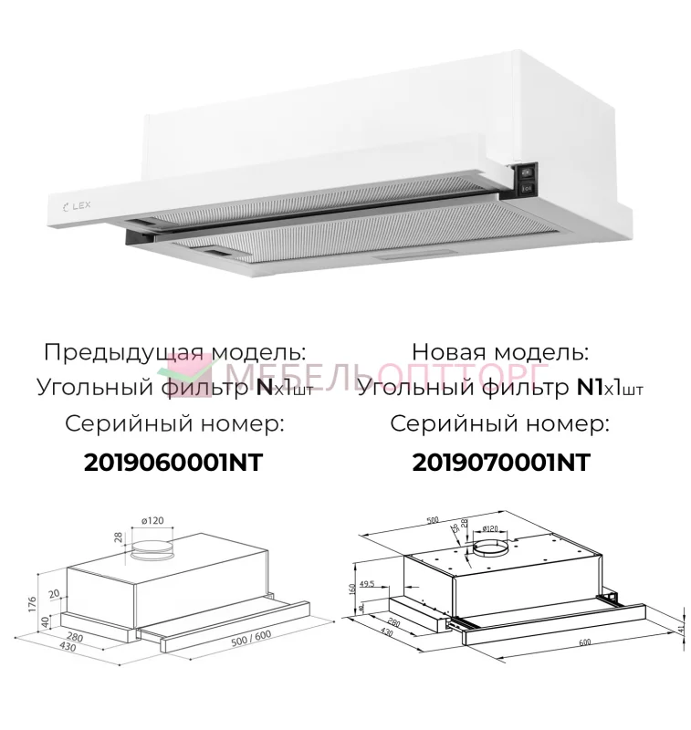 Добавить отзыв о товаре:Вытяжка кухонная встраиваемая LEX Hubble 600 White