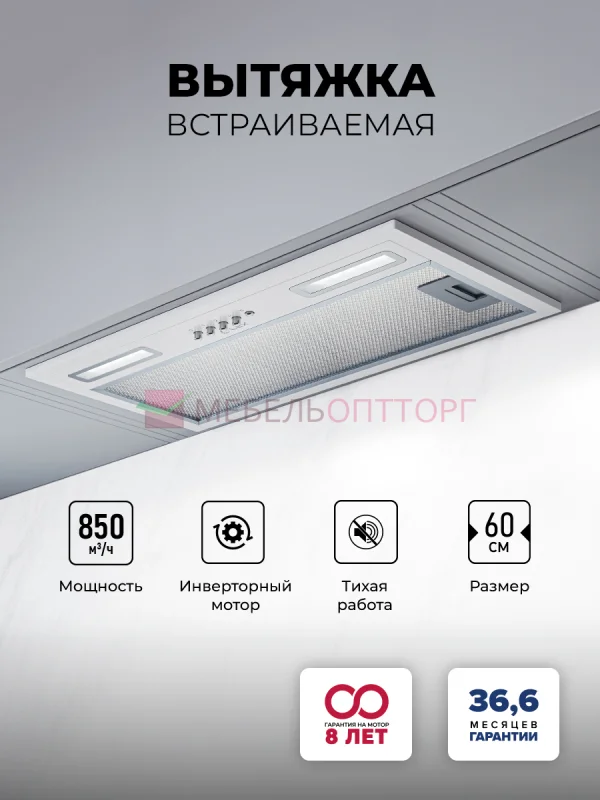 Вытяжка кухонная встраиваемая LEX HYPER 600 Inverter WH