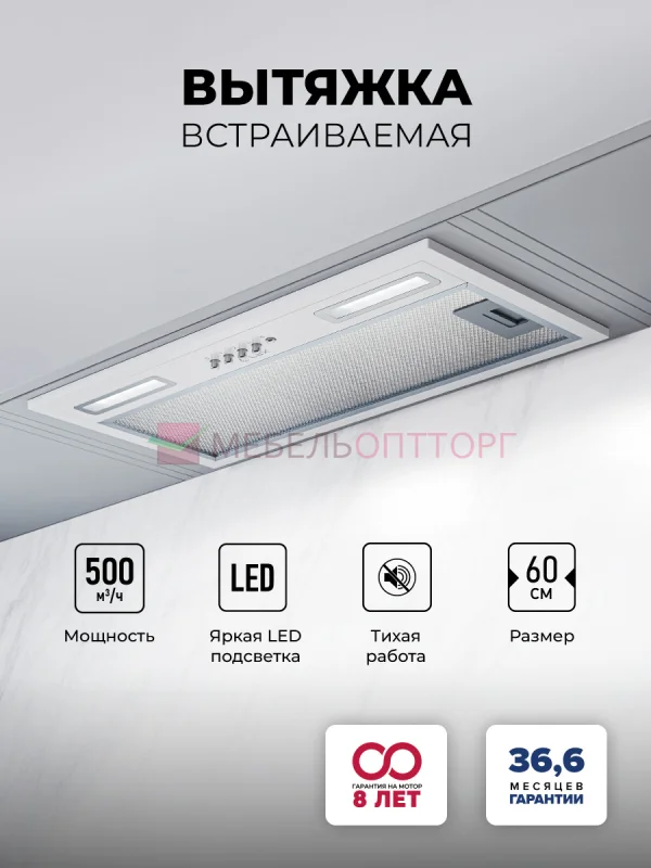 Вытяжка кухонная встраиваемая LEX HYPER 600 Light WH