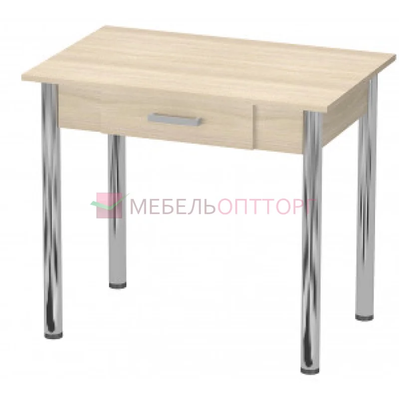 Стол прекрасно впишется в интерьер вашей кухни. В столе имеется выдвижной ящик для кухонных принадлежностей. Ноги стола хромированные.