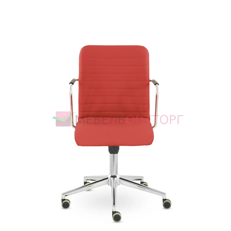 Уникальный каркас из металла и узкие хромированные подлокотники с небольшими пластиковыми накладками придают конструкции легкость и прочность. Горизонтальные строчки на спинке подчеркивают элегантный и современный вид. Хромированная крестовина выдерживает до 120 кг.